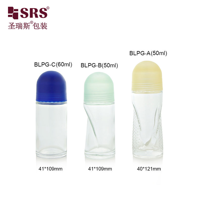 BLPG 50ml 60ml بطری شیشه ای خالی با شکل منحصر به فرد برای بسته بندی ژل دئودورانت بدن و ضد تعریق